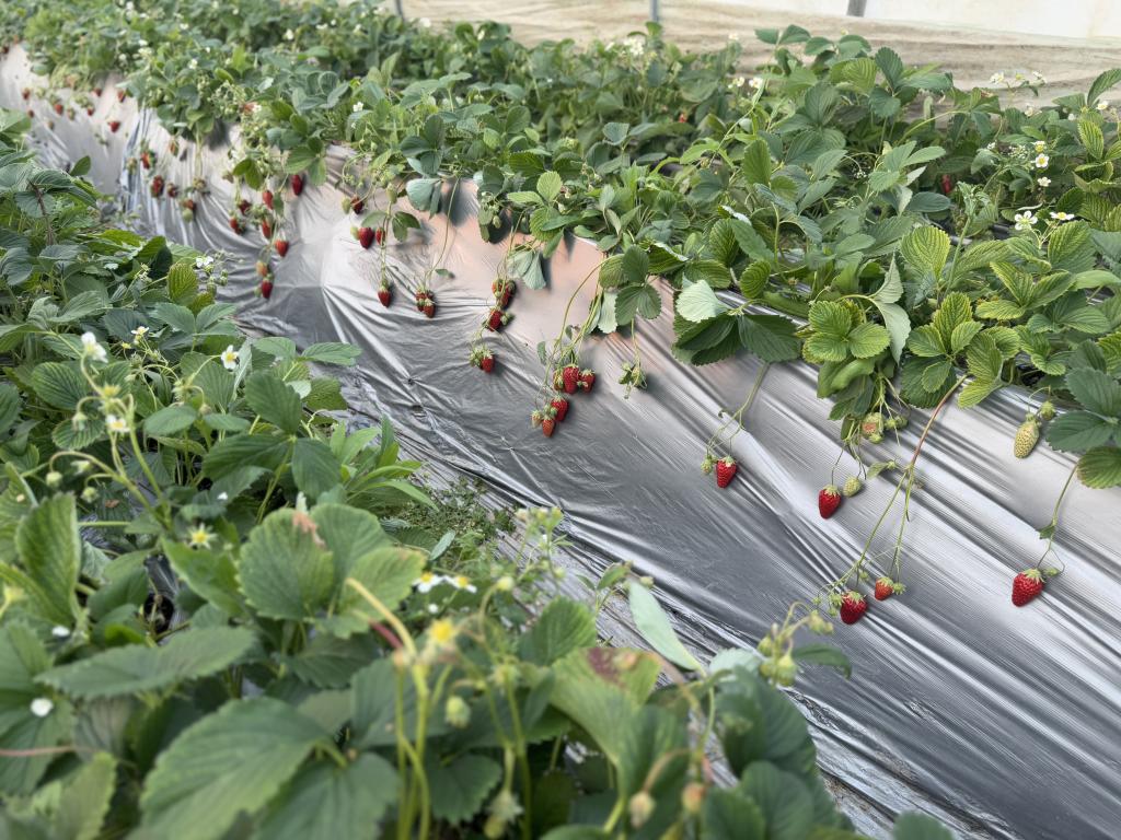 下午三时,阳光和煦,春意盎然。女教职工们抵达乐土农场,在工作人员的引导下走进草莓大棚。翠绿的藤叶间缀满鲜红饱满的果实,清新的果香扑面而来。大家手持采摘篮,弯腰俯身,一边挑选成熟的草莓,一边分享生活趣事,现场气氛轻松融洽,欢声笑语不断。农场负责人介绍,园内草莓采用生态种植技术,绿色健康,女教职工们不仅体验了采摘的乐趣,更感受到乡村振兴背景下的现代农业魅力。