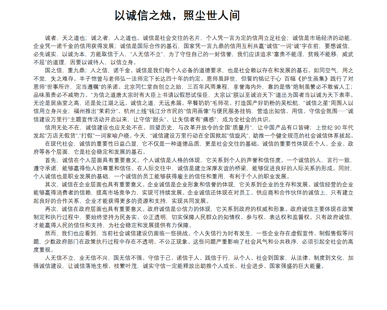 本次活动历时十余天,同学们踊跃报名,积极参加,共征集包括作文、微视频、宣传海报、绘画等四个类型的50件作品,这些作品充分展现了学校学生对诚信的认识,传递了正能量,体现了此次活动的主题,营造了良好的诚信氛围。