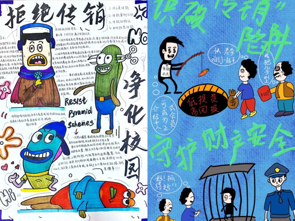 同学们积极报名,提交了海报、手抄报、微视频和口号等多种形式的作品。选手们紧扣主题,通过案例、警示语句和简洁画面传达传销危害。有的选手采用真实案例改编拍摄微视频,还有的选手通过手绘形式呈现防范要点。展现了对反传销宣传的高度认同与主动参与意识。同学们以多元创意传递反传销理念,共同守护财产安全与校园稳定。