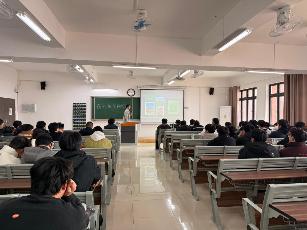 讲座现场,“薪火相传 经验领航”的标语醒目,台下学生认真聆听。安少华同学结合自身备考经历,围绕四六级词汇积累、听力训练、阅读技巧、写作翻译提分等核心内容分享,讲解备考规划制定、真题刷题方法及考场答题技巧。